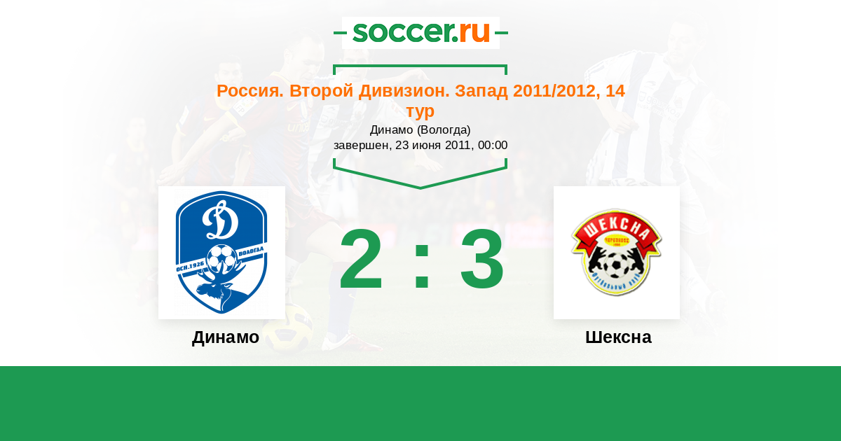 Россия. Вторая лига. Группа 2 25.05.2012 Динамо Вологда Логотип футбольный клуб Динамо Вологда 3:4 Логотип футбольный клуб Шексна (Череповец) Шексна