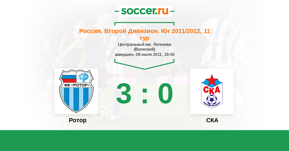 Россия. Вторая лига. Группа 1 18.04.2012 СКА Логотип футбольный клуб СКА (Ростов-на-Дону) 0:3 Логотип футбольный клуб Ротор (Волгоград) Ротор