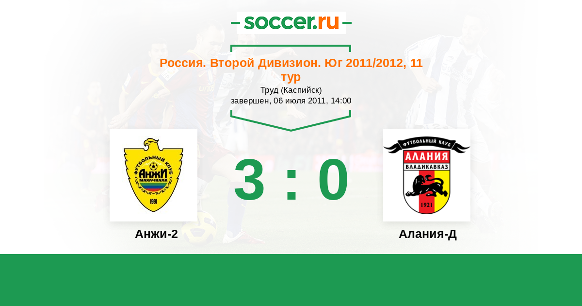 Россия. Вторая лига. Группа 1 18.04.2012 Алания-Д Логотип футбольный клуб Алания-Д (Владикавказ) 0:2 Логотип футбольный клуб Дагдизель (Махачкала) Дагдизель