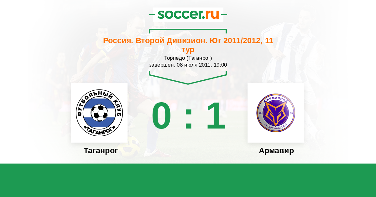 Россия. Вторая лига. Группа 1 18.04.2012 Торпедо Армавир Логотип футбольный клуб Торпедо Армавир 2:2 Логотип футбольный клуб Таганрог Таганрог
