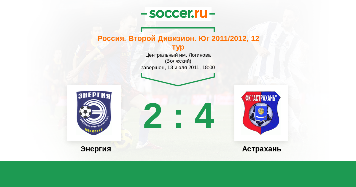 Россия. Вторая лига. Группа 1 25.04.2012 Астрахань Логотип футбольный клуб Астрахань 2:1 Логотип футбольный клуб Энергия (Волжский) Энергия