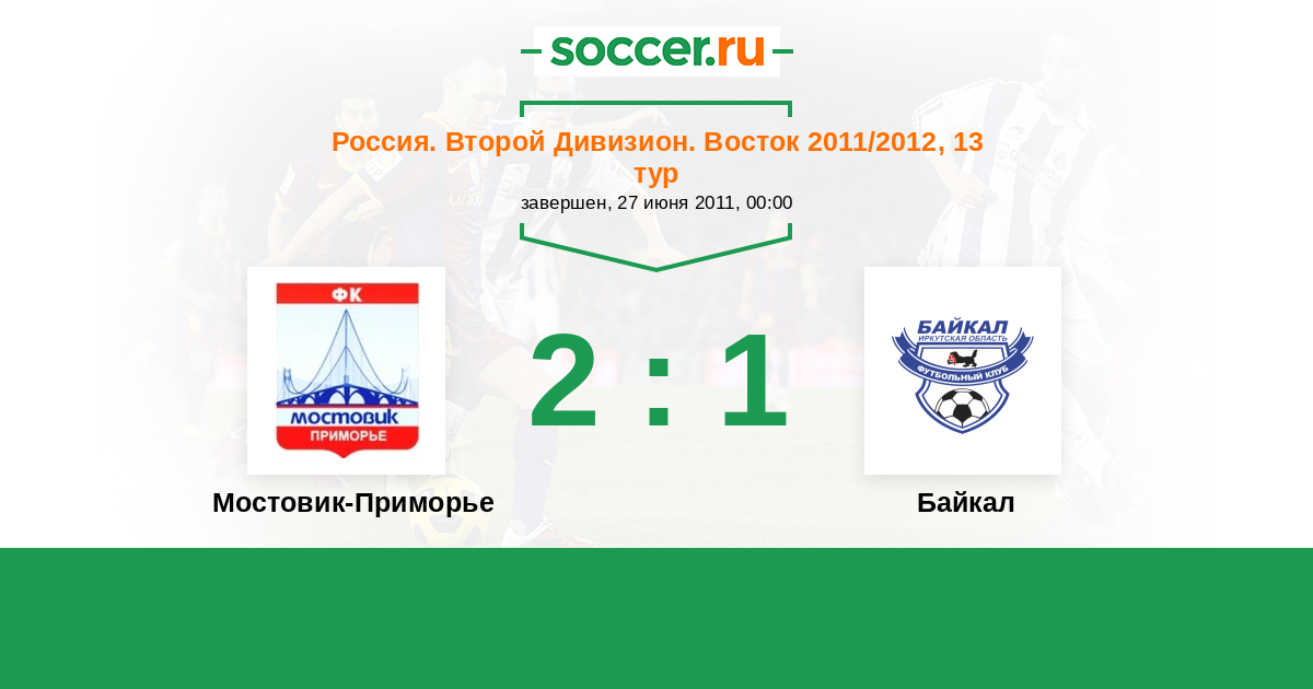 Россия. 2-й дивизион. Восток 08.07.2011 Байкал Логотип футбольный клуб Байкал (Иркутск) 1:0 Логотип футбольный клуб Мостовик-Приморье (Уссурийск) Мостовик-Приморье