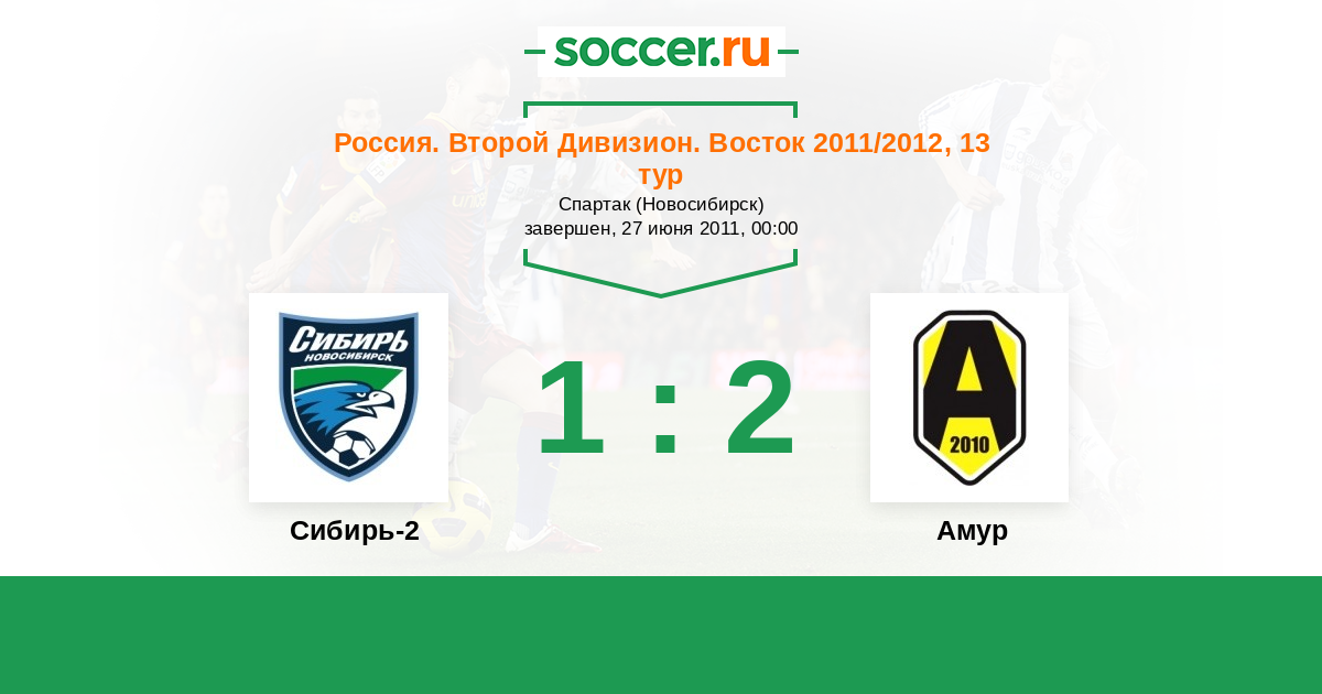Россия. 2-й дивизион. Восток 08.07.2011 Амур Логотип футбольный клуб Амур  (Благовещенск) 3:0 Логотип футбольный клуб Сибирь-2 (Новосибирск) Сибирь-2