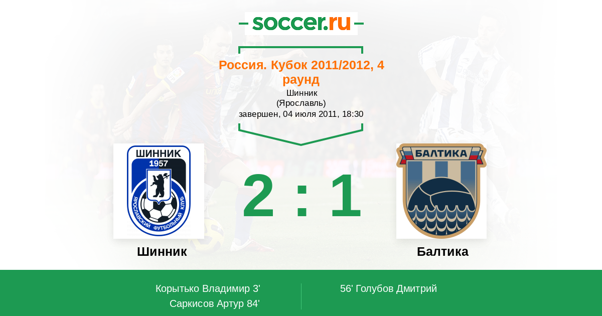 Протокол матча Шинник против Балтика