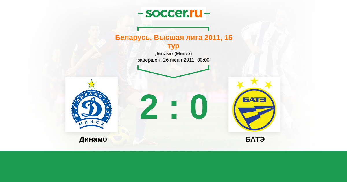 Беларусь. Высшая лига 15.06.2013 Динамо Логотип футбольный клуб Динамо (Минск) 1:2 Логотип футбольный клуб БАТЭ (Борисов) БАТЭ