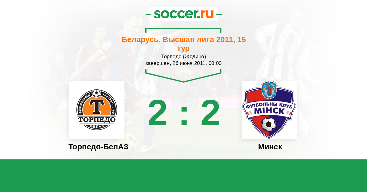 Беларусь. Высшая лига 27.06.2012 Торпедо-БелАЗ Логотип футбольный клуб Торпедо-БелАЗ (Жодино) 2:1 Логотип футбольный клуб Минск Минск