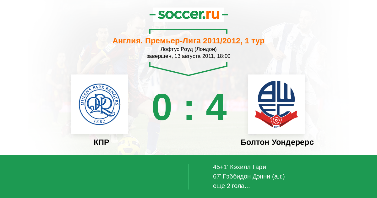 Протокол матча КПР против Болтон Уондерерс