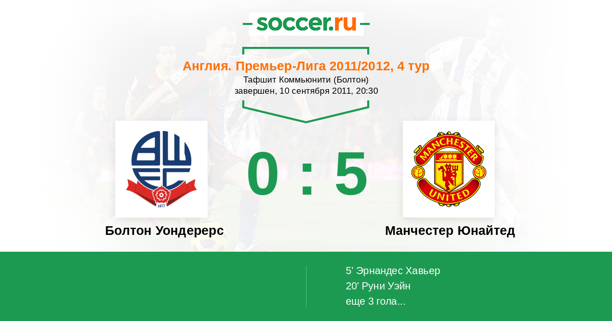 Протокол матча Болтон Уондерерс против Манчестер Юнайтед