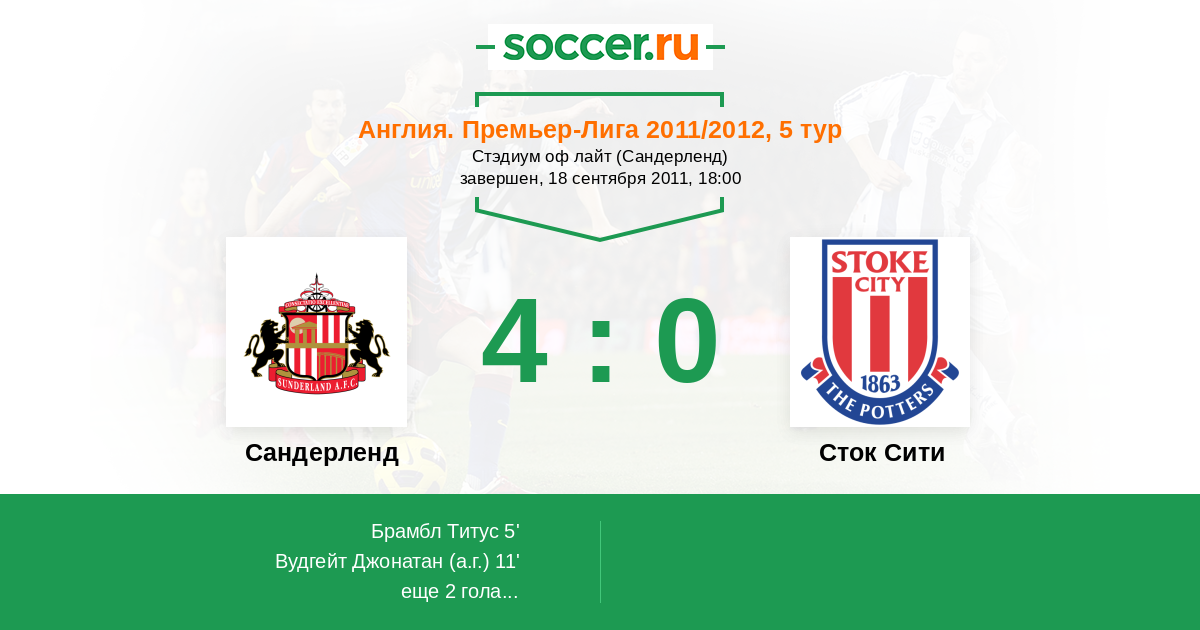 Протокол матча Сандерленд против Сток Сити