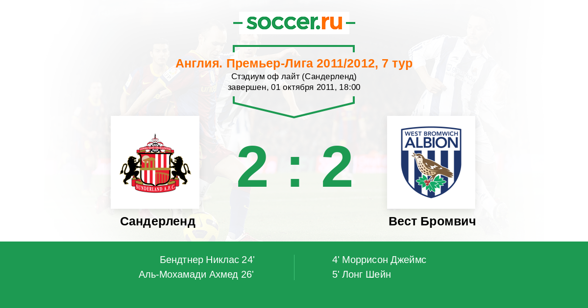 Протокол матча Сандерленд против Вест Бромвич