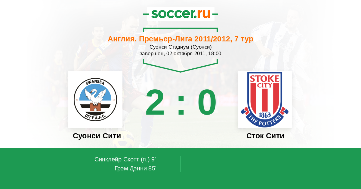 Протокол матча Суонси Сити против Сток Сити