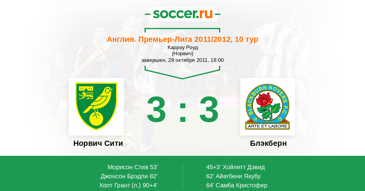Протокол матча Норвич Сити против Блэкберн