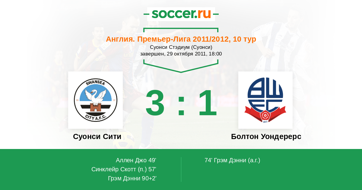 Протокол матча Суонси Сити против Болтон Уондерерс