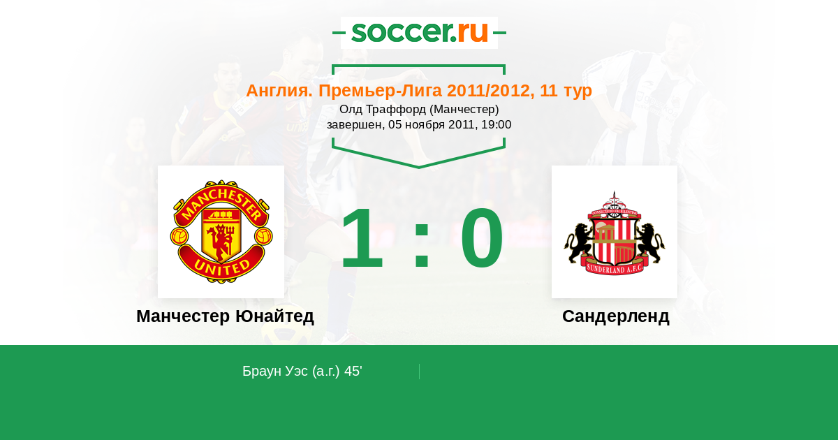 Протокол матча Манчестер Юнайтед против Сандерленд