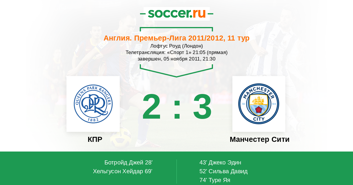 Протокол матча КПР против Манчестер Сити