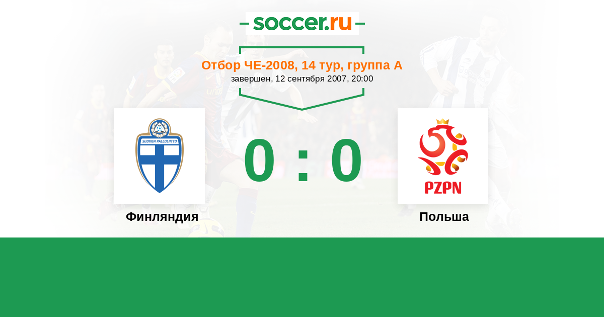 Отбор Евро 02.09.2006 Польша Логотип Польша 1:3 Логотип Финляндия Финляндия