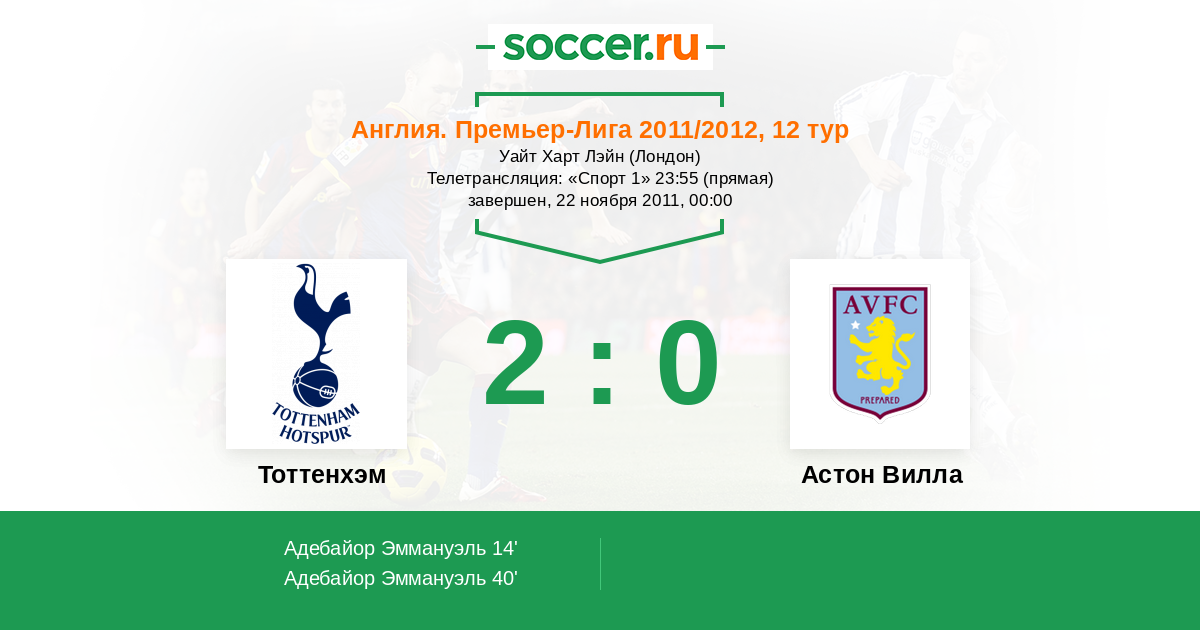 Протокол матча Тоттенхэм против Астон Вилла