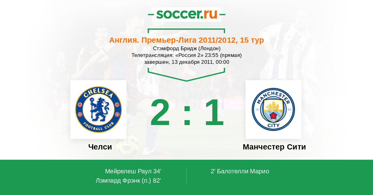 2' (0:1) Балотелли Марио (45) (Агуэро Серхио (16))
