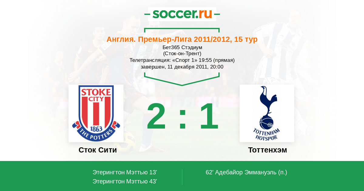 Протокол матча Сток Сити против Тоттенхэм