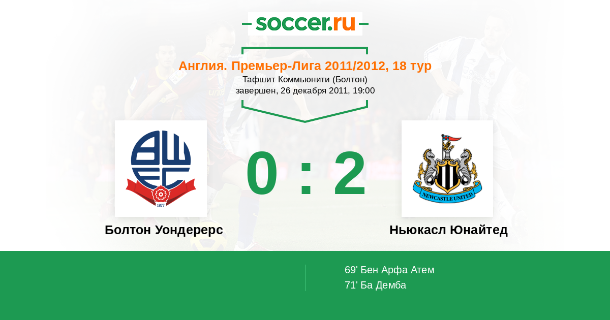 Протокол матча Болтон Уондерерс против Ньюкасл Юнайтед