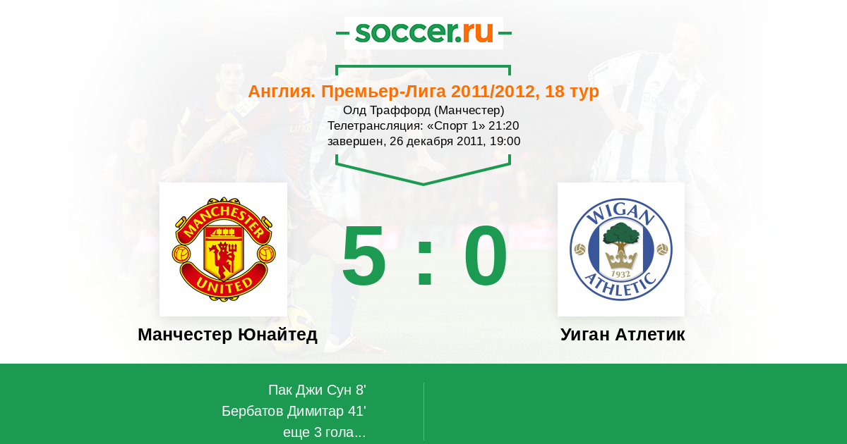Протокол матча Манчестер Юнайтед против Уиган Атлетик