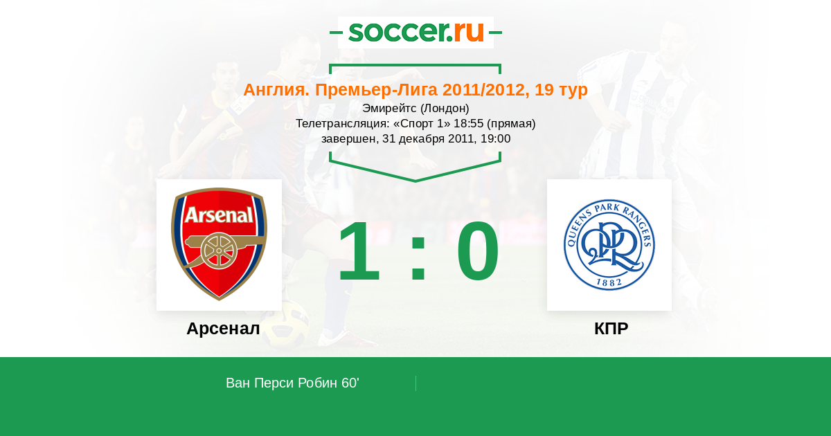 Протокол матча Арсенал против КПР