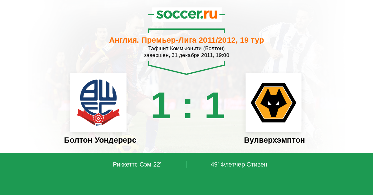 Протокол матча Болтон Уондерерс против Вулверхэмптон