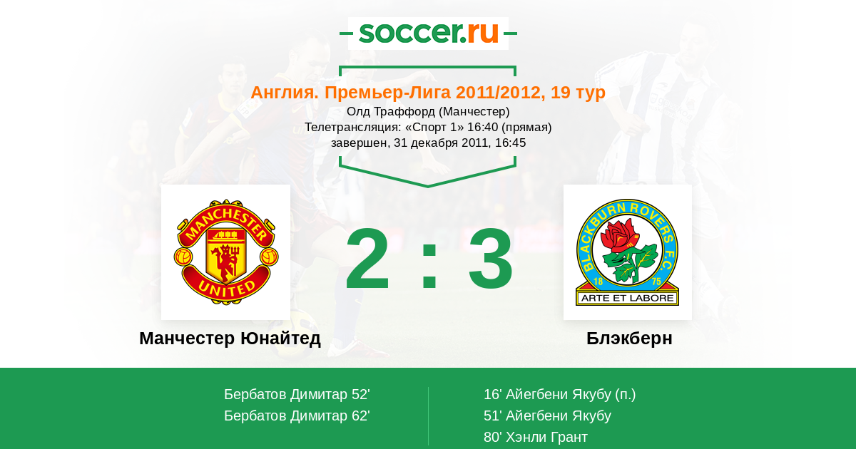 Протокол матча Манчестер Юнайтед против Блэкберн