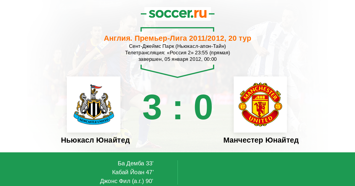 Протокол матча Ньюкасл Юнайтед против Манчестер Юнайтед