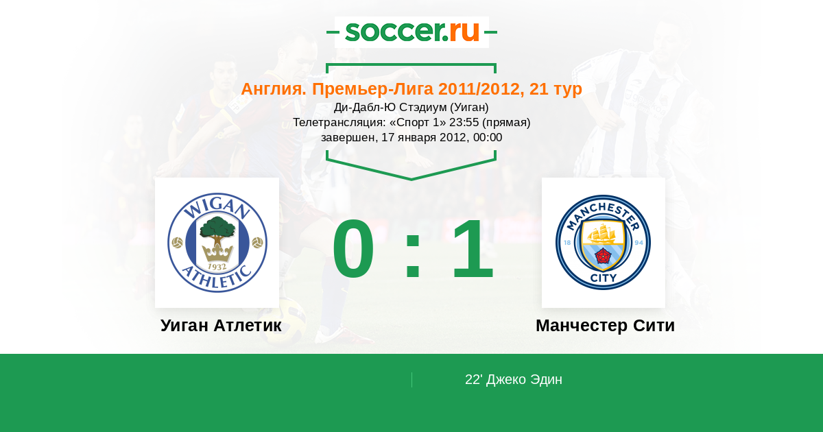 Протокол матча Уиган Атлетик против Манчестер Сити