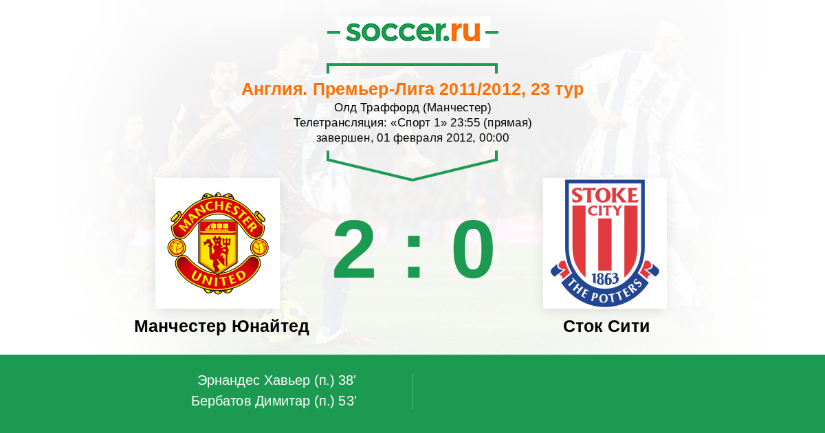 Протокол матча Манчестер Юнайтед против Сток Сити
