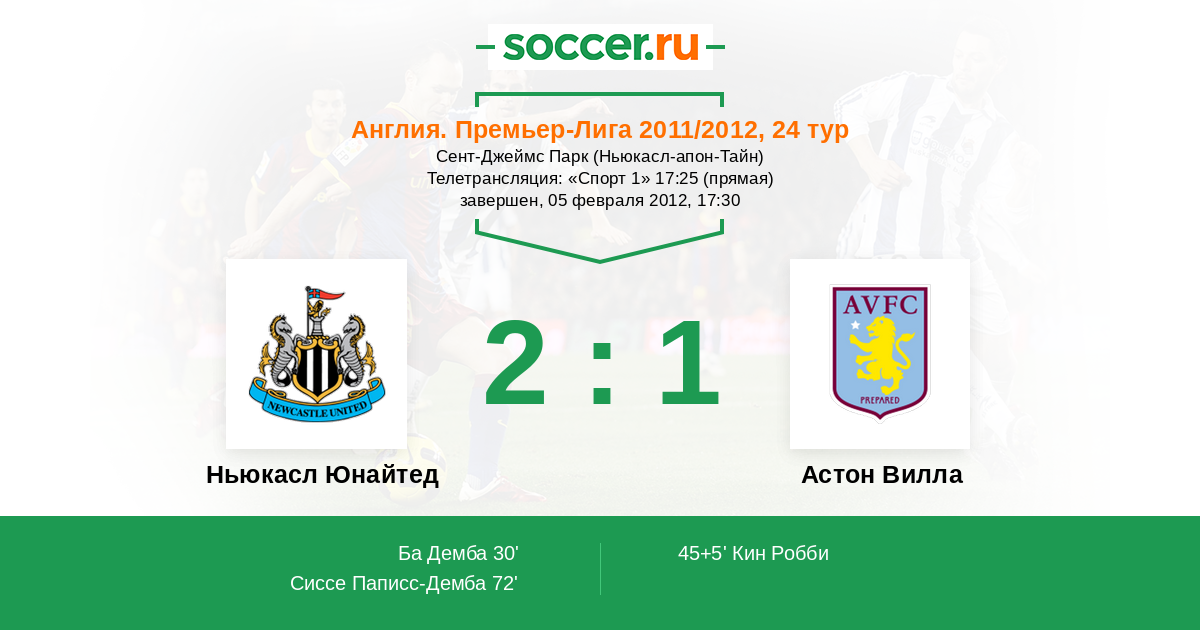 Протокол матча Ньюкасл Юнайтед против Астон Вилла