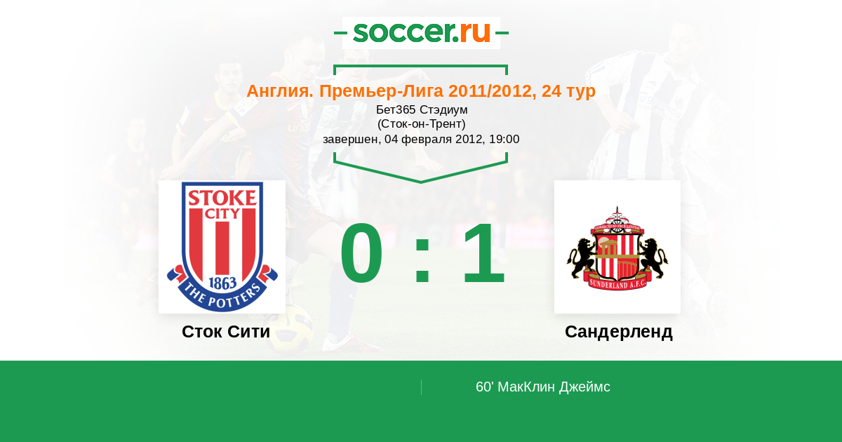 Протокол матча Сток Сити против Сандерленд