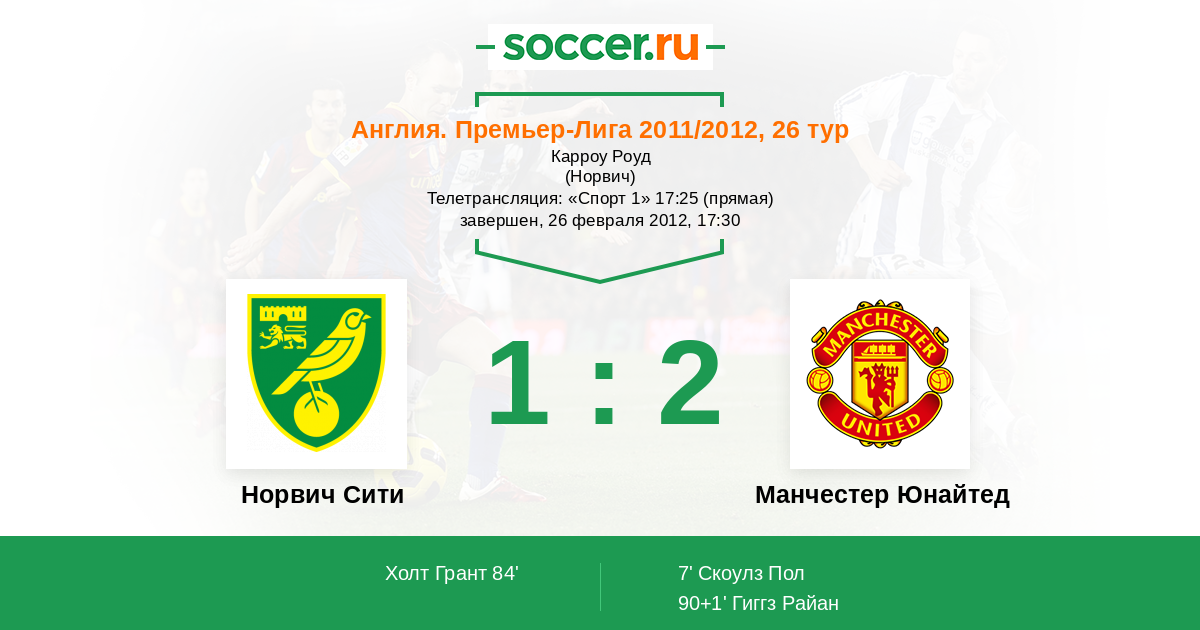 Протокол матча Норвич Сити против Манчестер Юнайтед