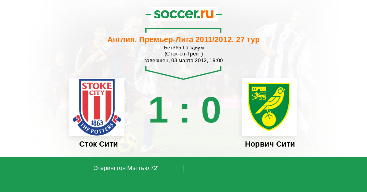 Протокол матча Сток Сити против Норвич Сити