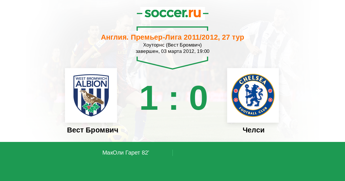 Протокол матча Вест Бромвич против Челси