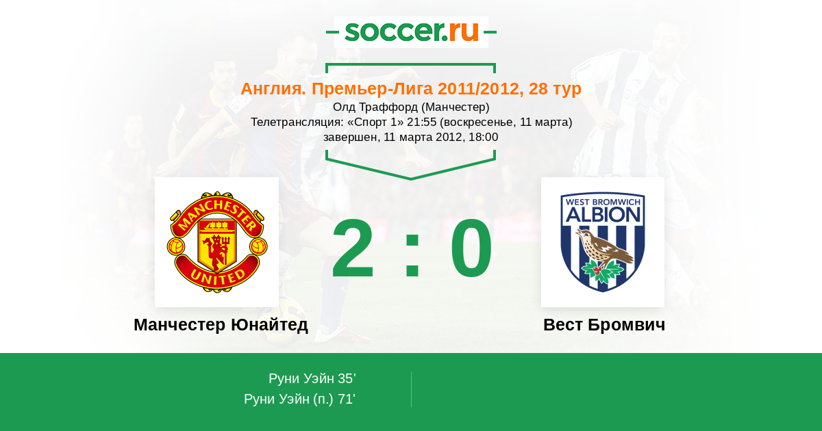 Протокол матча Манчестер Юнайтед против Вест Бромвич
