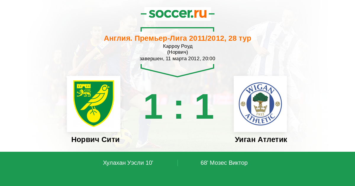Протокол матча Норвич Сити против Уиган Атлетик