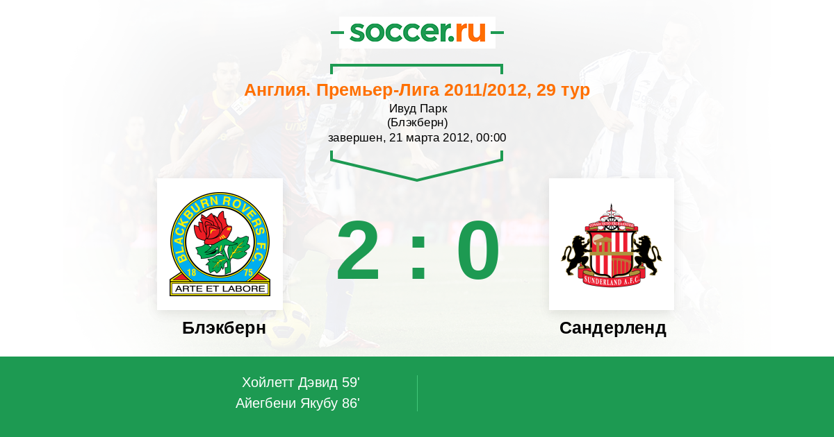 Протокол матча Блэкберн против Сандерленд