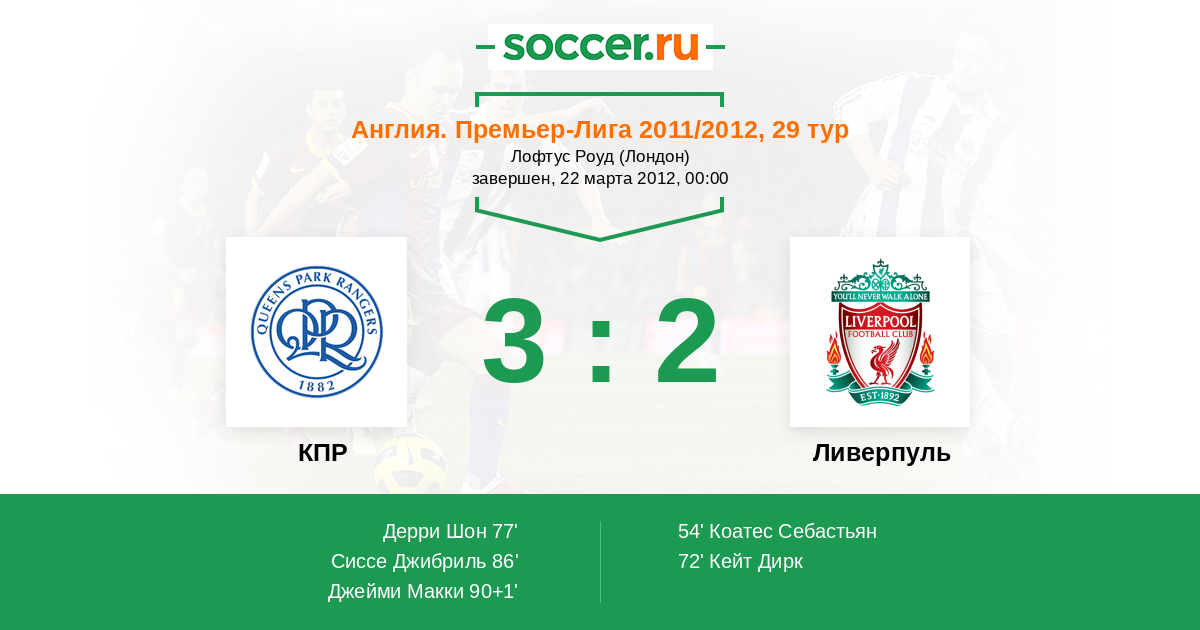 Протокол матча КПР против Ливерпуль