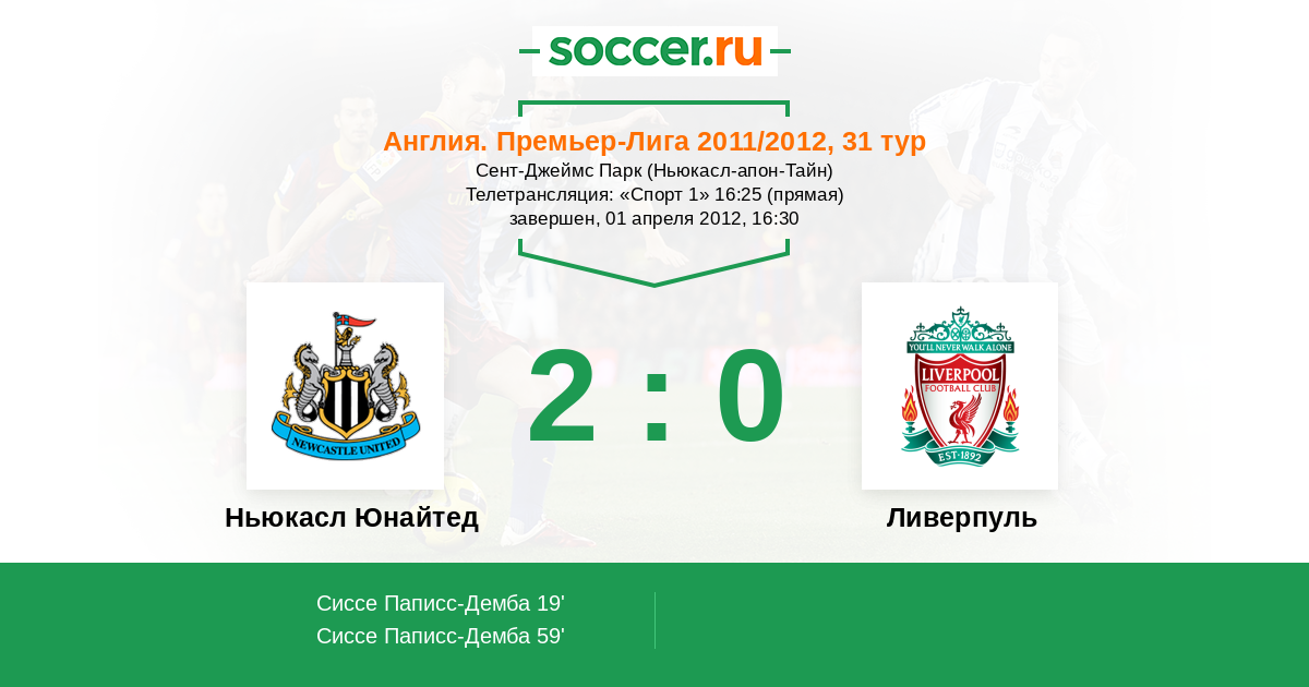 Протокол матча Ньюкасл Юнайтед против Ливерпуль