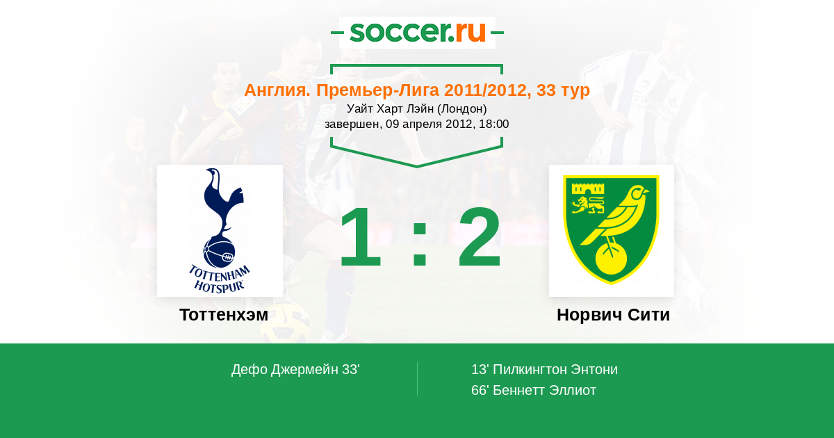 Протокол матча Тоттенхэм против Норвич Сити