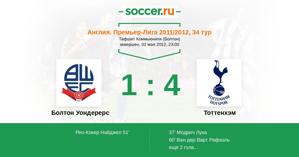 Протокол матча Болтон Уондерерс против Тоттенхэм