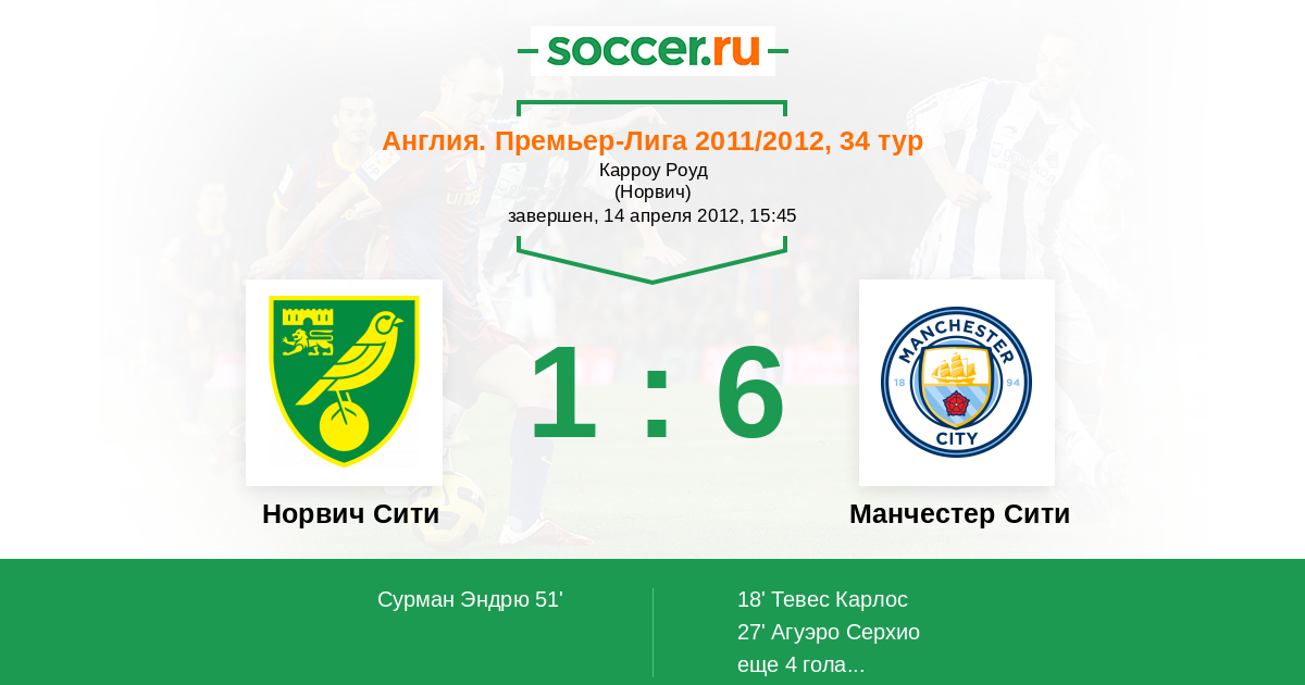 Протокол матча Норвич Сити против Манчестер Сити