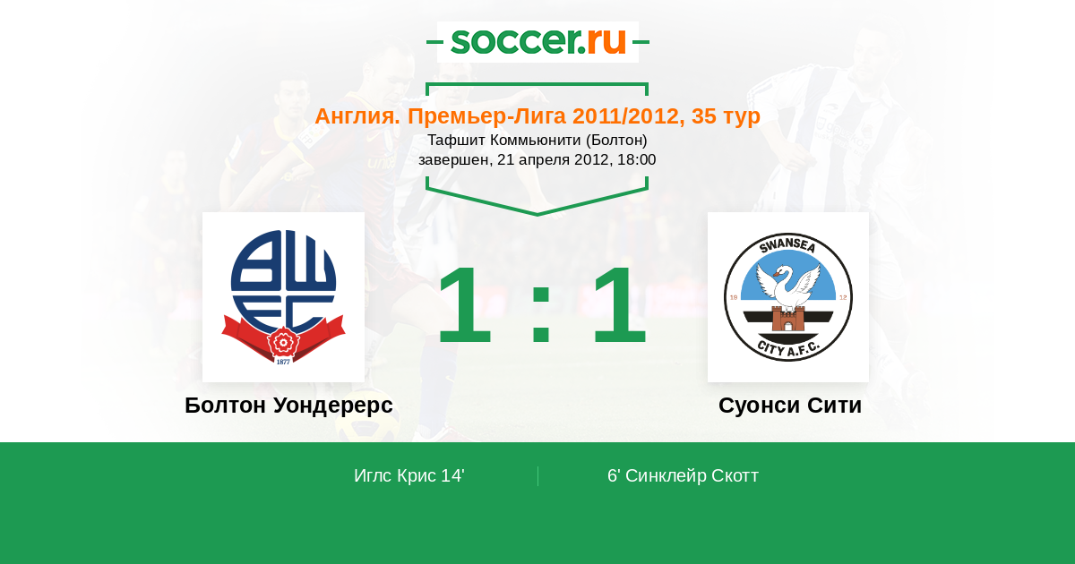 Протокол матча Болтон Уондерерс против Суонси Сити