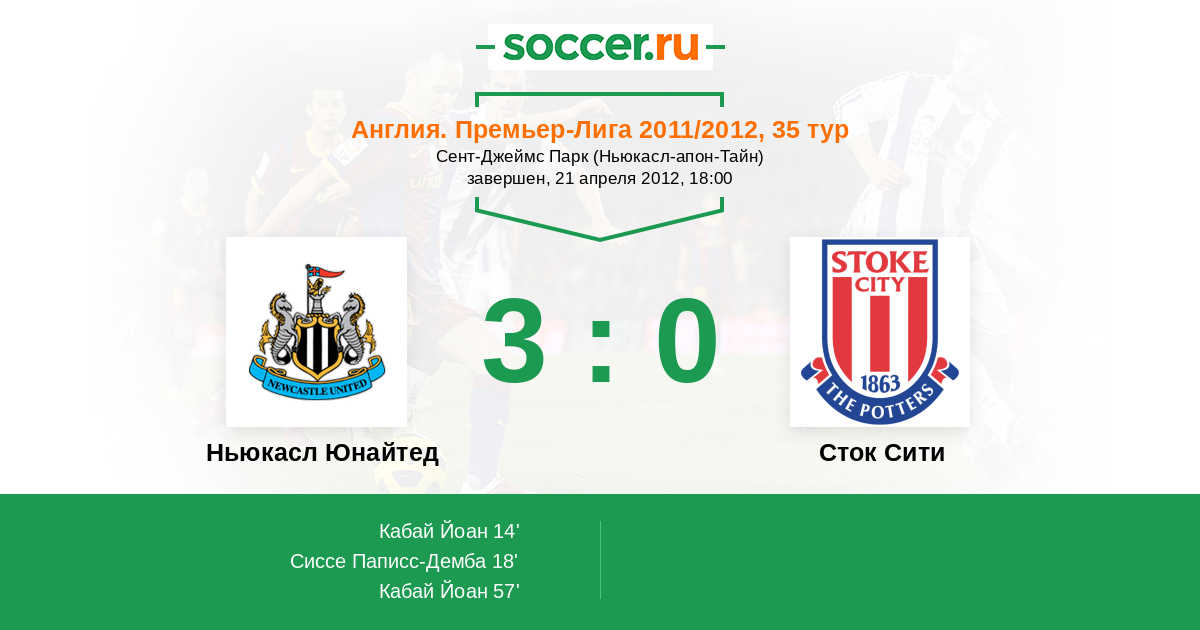 Протокол матча Ньюкасл Юнайтед против Сток Сити