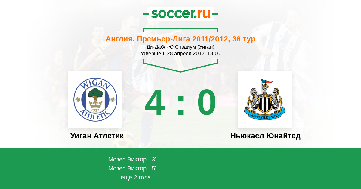 Протокол матча Уиган Атлетик против Ньюкасл Юнайтед