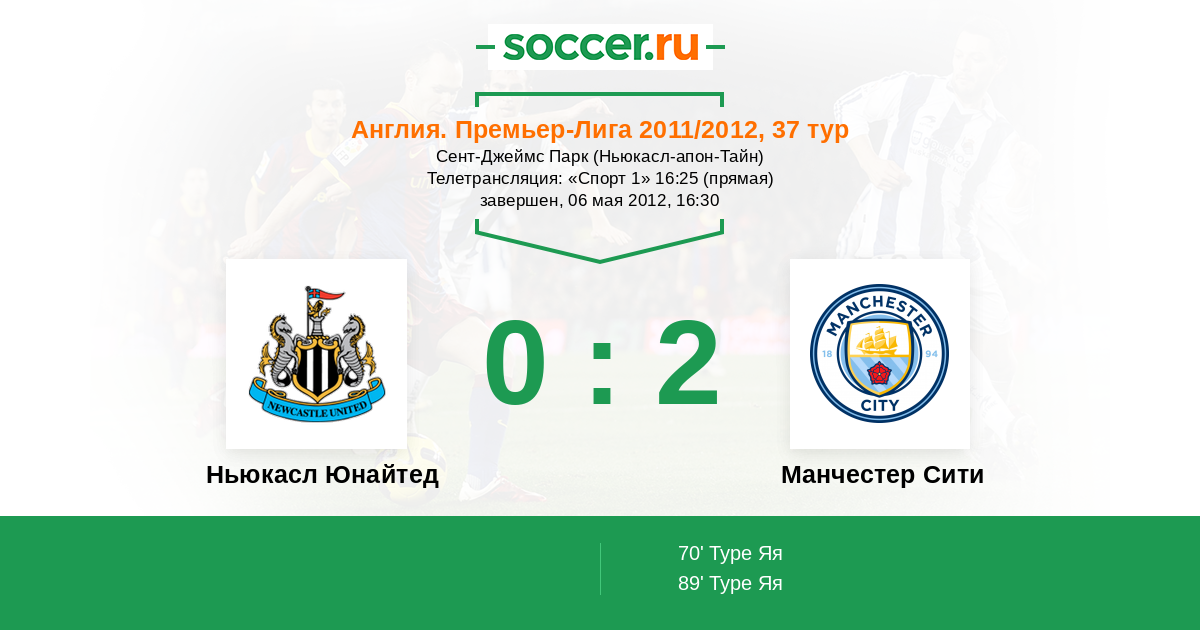 Протокол матча Ньюкасл Юнайтед против Манчестер Сити