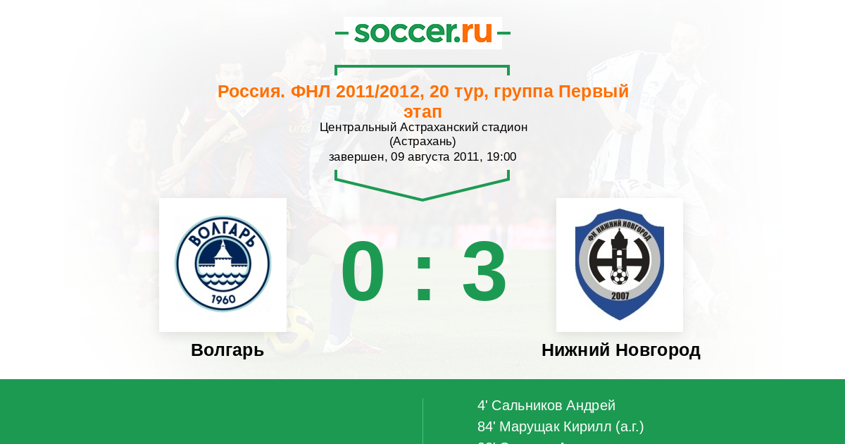 Протокол матча Волгарь-Газпром против Нижний Новгород