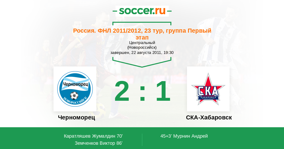 Протокол матча Черноморец против СКА-Энергия